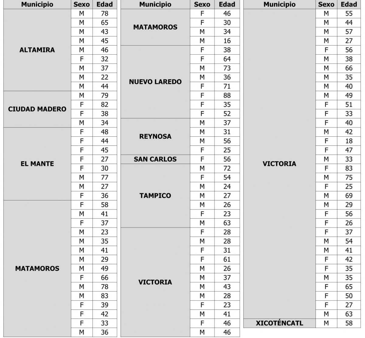 Los nuevos casos fueron confirmados de acuerdo a la siguiente tabla: