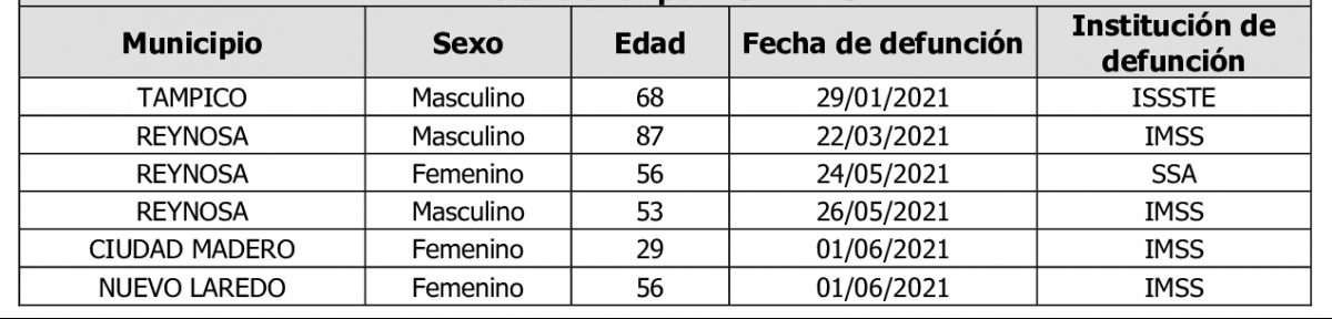 Con la actualización, la cifra oficial en Tamaulipas es de 55,626 positivos, de los cuales 49,404 se han recuperado y 5,164 han perdido la vida.