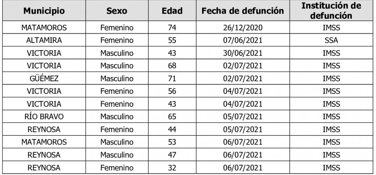 Y que las defunciones corresponden a: