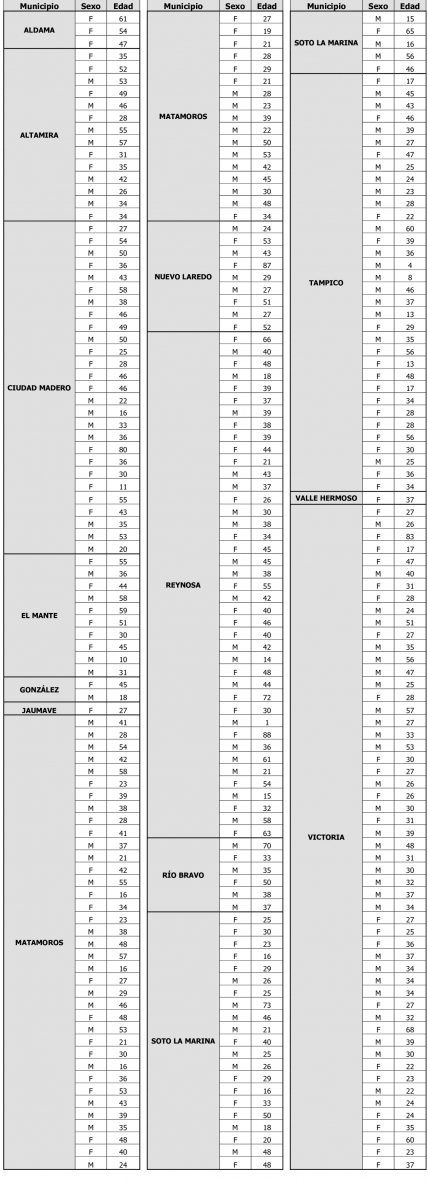 Dijo que los nuevos casos se distribuyen por municipio de la siguiente forma: