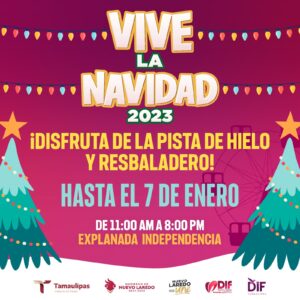 El Gobierno de Nuevo Laredo extiende una cálida invitación a las familias para aprovechar la última jornada de diversión en la resbaladilla y pista de hielo ubicadas en la Explanada de la Independencia, frente al Palacio Federal.
