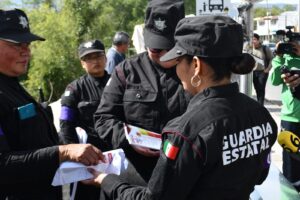 La encargada de la Guardia Estatal de Género, oficial Claudia Elizabeth Núñez Álvarez, explicó que a manera de estrechar la cercanía, elementos pertenecientes a esta unidad de la Guardia Estatal abordan las unidades para entregar violentómetros, trípticos y explicar las diferentes funciones que realizan.