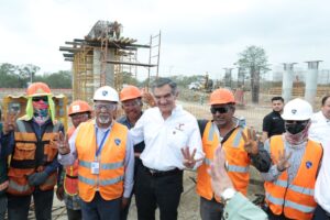 Altamira, Tamaulipas.- Al constatar el avance del 70 por ciento que registra la construcción del nuevo “Puente de la Esperanza» y tras ser informado que se concluirá en el mes de abril, el gobernador Américo Villarreal Anaya aseguró que esta obra es un ejemplo de lo que se puede lograr cuando los recursos públicos se manejan con honestidad.