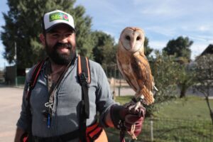 El biólogo Francisco Javier Flores, responsable del equipo de cetrería, ha establecido un vínculo con las aves, lo que les permite obedecer comandos y reconocerlo como su cuidador desde que eran pequeñas crías.