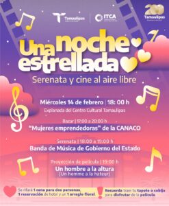 El evento denominado «Bajo una noche estrellada», se realizará el 14 de febrero a partir de las 17 horas en la Plaza Juárez en Ciudad Victoria.