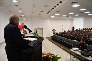 En una ceremonia celebrada en la Universidad de Seguridad y Justicia de Tamaulipas (USJT), 30 elementos de la Guardia Estatal y 12 de los Cuerpos de Vigilancia, Custodia y Seguridad culminaron esta capacitación a cargo de la instructora de la Dirección General de Formación y Servicio Profesional de Carrera de la FGJT.