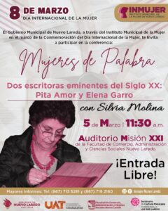 La conferencia «Mujeres de palabra: Dos Escritoras Eminentes del Siglo XX: Pita Amor y Elena Garro con Silvia Molina» promete ser un evento enriquecedor que celebra el legado literario de destacadas autoras.