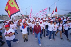 Con un fervoroso recibimiento, los residentes de Los Olivos II acogieron a la candidata Carmen Lilia Canturosas Villarreal de la coalición “Sigamos Haciendo Historia en Tamaulipas”, quien junto a Gabriela Regalado, candidata a la diputación local por el Distrito Uno, recorrió las calles del sector.