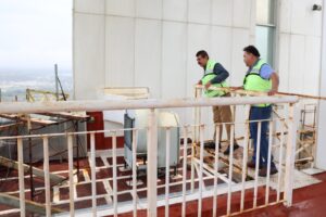 Dentro de las actividades de prevención y verificación, el secretario de Administración recorrió cada piso con el fin de prevenir daños por escurrimiento y proteger la estructura de la Torre de Gobierno, principalmente los cristales, en los cuales se han instalado cintas de seguridad en la entrada principal y en los accesos alternos.