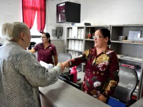 «El motivo de mi visita es para comprobar que el servicio y la atención que se les da a los contribuyentes sea de calidad y para observar las condiciones físicas en que se encuentra este edificio público y analizar de que manera se pueden mejorar las instalaciones», comentó Adriana Lozano a las y los presentes.