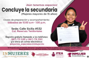 El Gobierno Municipal, en un esfuerzo conjunto con el Instituto Municipal de la Mujer (Inmujer) y el Instituto Tamaulipeco de Educación para Adultos (ITEA), ha lanzado una convocatoria dirigida a mujeres mayores de 15 años que deseen concluir su educación secundaria.