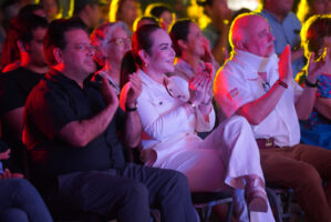 La presidenta municipal, Carmen Lilia Canturosas, asistió al evento acompañada de su esposo, Oscar Mario Hinojosa Ramírez, y compartió el disfrute con cientos de ciudadanos.