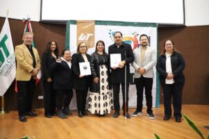 En representación de la UTTN recibieron este reconocimiento la directora de la carrera de Administración y Logística Internacional, María Soledad Ocañas Martínez; el coordinador del Departamento de Inclusión y Equidad Educativa, Rubén David Soto Zárate y la intérprete en Lengua de Señas Mexicana, Sol Karina Soto Batalla.