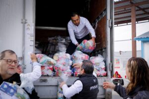 Reynosa, Tamaulipas.- Continuando con la política de asistencia social para las personas que se encuentran en situación de migración, el Sistema para el Desarrollo Integral para la Familia presidido por la doctora María de Villarreal, inició la entrega de dotaciones alimentarias del programa “En Contingencia, con Voluntad hay Esperanza”, correspondiente al Departamento de Asistencia Social Alimentaria.