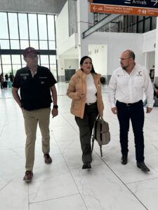 La secretaria de Bienestar federal, Ariadna Montiel Reyes, arribó esta mañana a Reynosa y fue recibida por el secretario general de Gobierno, Héctor Joel Villegas González.