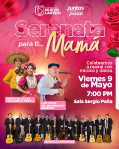 Con el propósito de honrar a las madres en su día y fomentar la unión familiar a través de la cultura y la música, el Gobierno Municipal de Nuevo Laredo invita a toda la comunidad a disfrutar de una velada muy especial: “Serenata para ti… mamá”, un evento artístico y emotivo que busca rendir tributo al pilar más importante de los hogares mexicanos.