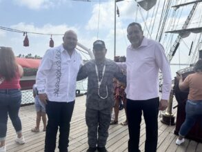 Tampico, Tamaulipas.- Con el firme propósito de estrechar los vínculos de entendimiento y colaboración internacional, el secretario general de Gobierno, Héctor Joel Villegas González, en representación del gobernador del Estado, Américo Villarreal Anaya, sostuvo una reunión institucional con la embajadora extraordinaria y Plenipotenciaria de la República Bolivariana de Venezuela en México, Stella Marina Lugo de Montilla, en el Salón Protocolar del Buque Escuela “Simón Bolívar” de la Armada de Venezuela, atracado en el Puerto de Tampico.
