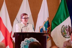 Durante su intervención, la titular de Economía reconoció a la Asociación de Maquiladoras de Matamoros por la realización de una edición más de este evento, que se ha consolidado como uno de los más importantes del norte del país en materia de integración productiva y dinamismo económico.