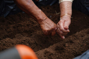 La participación activa de los adultos mayores no se limitó al trabajo físico; también compartieron anécdotas, conocimientos previos y experiencias de vida relacionadas con la agricultura, lo que enriqueció el ambiente del taller y fortaleció la convivencia entre los asistentes.