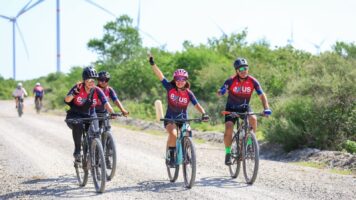 Ciudad Victoria, Tamaulipas.- Como parte de las celebraciones por el Día Mundial del Viento, el secretario de Desarrollo Energético de Tamaulipas, Walter Julián Ángel Jiménez y su equipo de trabajo participaron en la carrera ciclista realizada en el parque eólico Mesa, La Paz.
