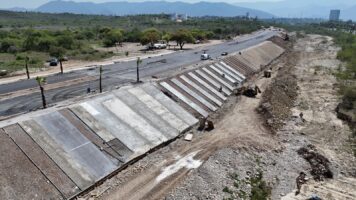 Refirió que los trabajos iniciaron pavimentando con carpeta asfáltica, obras pluviales, revestimiento con concreto hidráulico de talud en la margen del río, señalamiento horizontal y vertical, guarniciones, banquetas y alumbrado público, además de crear dos cuerpos de 10.50 metros con 3 carriles cada uno de carpeta asfáltica, camellón central de 4.20 m, jardinería y señalética.