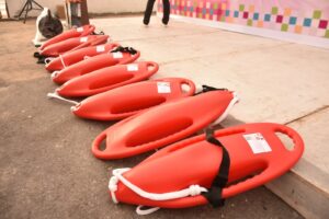 Entre el equipo entregado al personal están desde boyas de rescate, megáfonos, carrete de vida o carrete de rescate, silbatos, gorras y playeras distintivas del cuerpo de rescate, entre otros más.