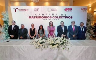 La ceremonia, realizada con el respaldo del Gobierno del Estado de Tamaulipas, el DIF Estatal, el Gobierno Municipal y el Registro Civil, fue el marco ideal para refrendar el compromiso de las instituciones con la familia como base de la sociedad. En representación de la presidenta del DIF Tamaulipas, Dra. María de Villarreal, asistió el Procurador de Protección de Niñas, Niños, Adolescentes y Familias, Jorge Alberto Galván Garcés, quien dirigió un mensaje emotivo a las parejas recién casadas.