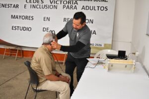 Ciudad Victoria, Tamaulipas.- En seguimiento a la jornada de bienestar e inclusión para adultos mayores celebrada en el Centro de Ejecución de Sanciones (CEDES) de Ciudad Victoria, personal del Sistema DIF Tamaulipas, lleva a cabo una campaña de evaluaciones por parte de profesionales en Audiología dirigida a personas de 60 años de edad en adelante.