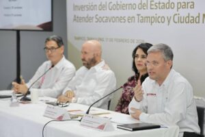 Tampico, Tamaulipas. – Con el objetivo de atender de manera prioritaria uno de los principales retos que enfrenta la zona sur del estado, el gobernador Américo Villarreal Anaya instruyó destinar una inversión inicial de 105 millones de pesos para atender la problemática de socavones en Tampico y Ciudad Madero.