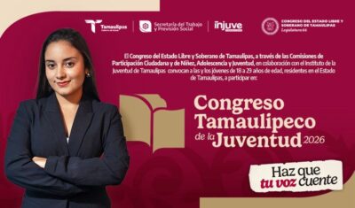 Ciudad Victoria, Tamaulipas.- El Congreso de Tamaulipas, a través de las Comisiones de Participación Ciudadana y de Niñez, Adolescencia y Juventud, en colaboración con el Instituto de la Juventud (INJUVE), anunció formalmente la apertura de la convocatoria para el Congreso Tamaulipeco de la Juventud 2026.
